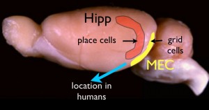 Grid Cells in rat entorhinal cortex were discovered in the Moser lab in Trondheim, Norway. These cells were first described in a paper in Nature 20051; For the past 8 years these neurons have been objects of intense study. As the New York Times reports, a paper published yesterday in Nature Neuroscience2 indicates rats aren't the only animals with grid cells; people have them, too. What are grid cells and what is the significance of recording them in humans?